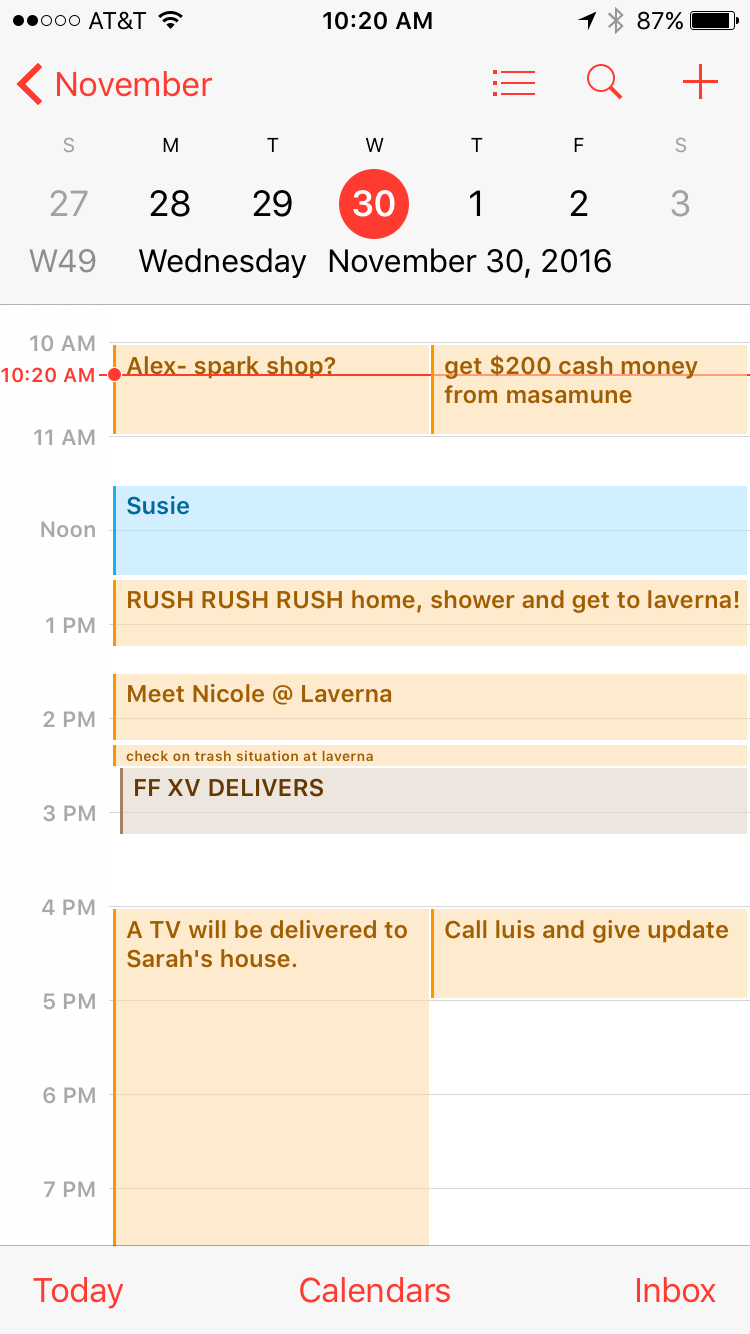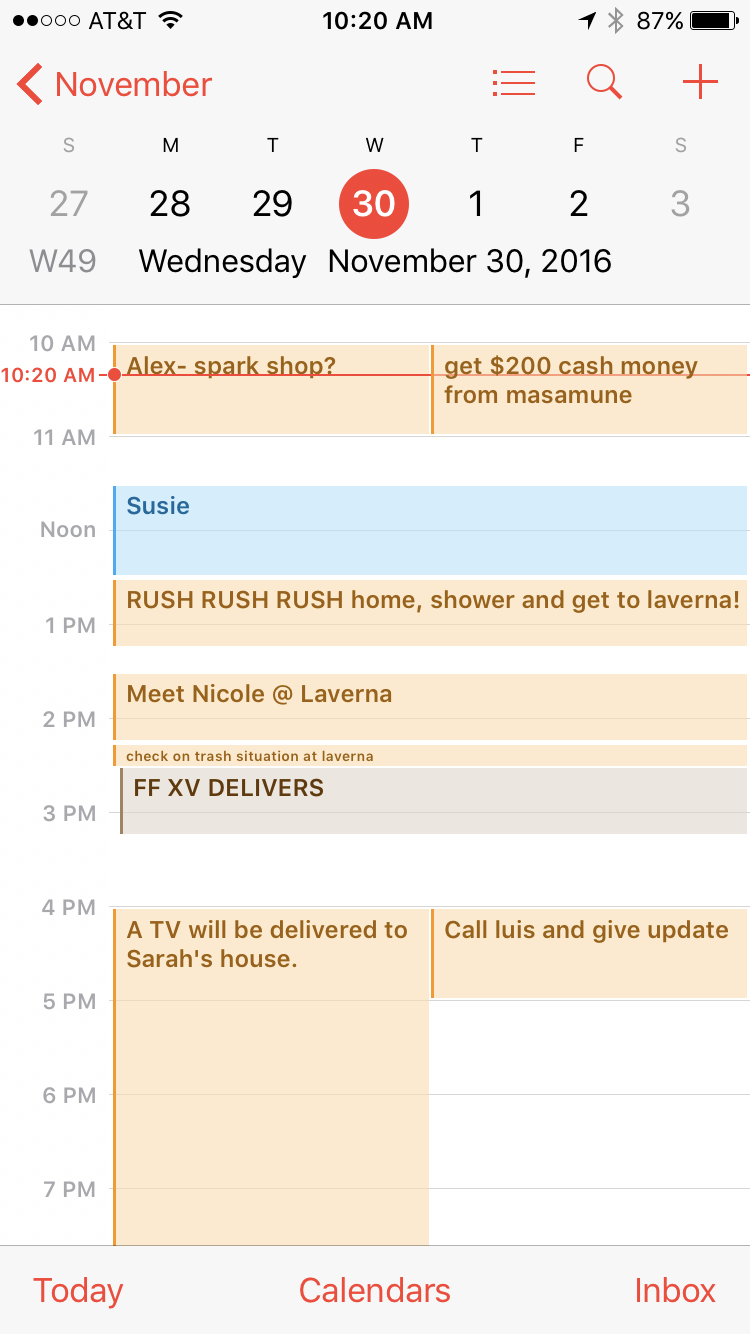 Without little reminders throughout the day, I would be totally lost. I’ve been managing my days like this, just as many people do with their schedules. My calendar is filled with both business and personal things- it’s all commingled throughout the day. I realized that if I did not do this, I’d fall victim to the lesser priorities nagging at my attention. And in Los Angeles, one HAS to do this if they want to shave hours off their commute time.